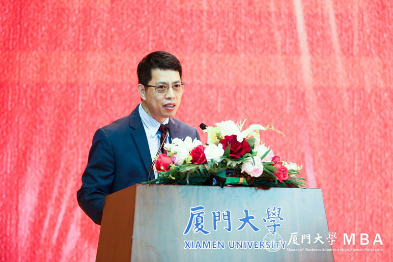 厦门大学管理学院院长叶建明教授致辞,他认为同学们的刻苦求学,奋发向上精神,特别是在职班面对繁重工作、家庭压力的同时,仍坚持学习积极参与活动的态度与毅力,是厦大校训“自强不息,止于至善”的真实写照。他也希望同学们在毕业离别母校后,依然能记得厦大MBA精神,持续培养自身的竞争力、自信心、创造力、合作、诚信精神和领导力。希望同学们能再聚芙蓉湖畔。