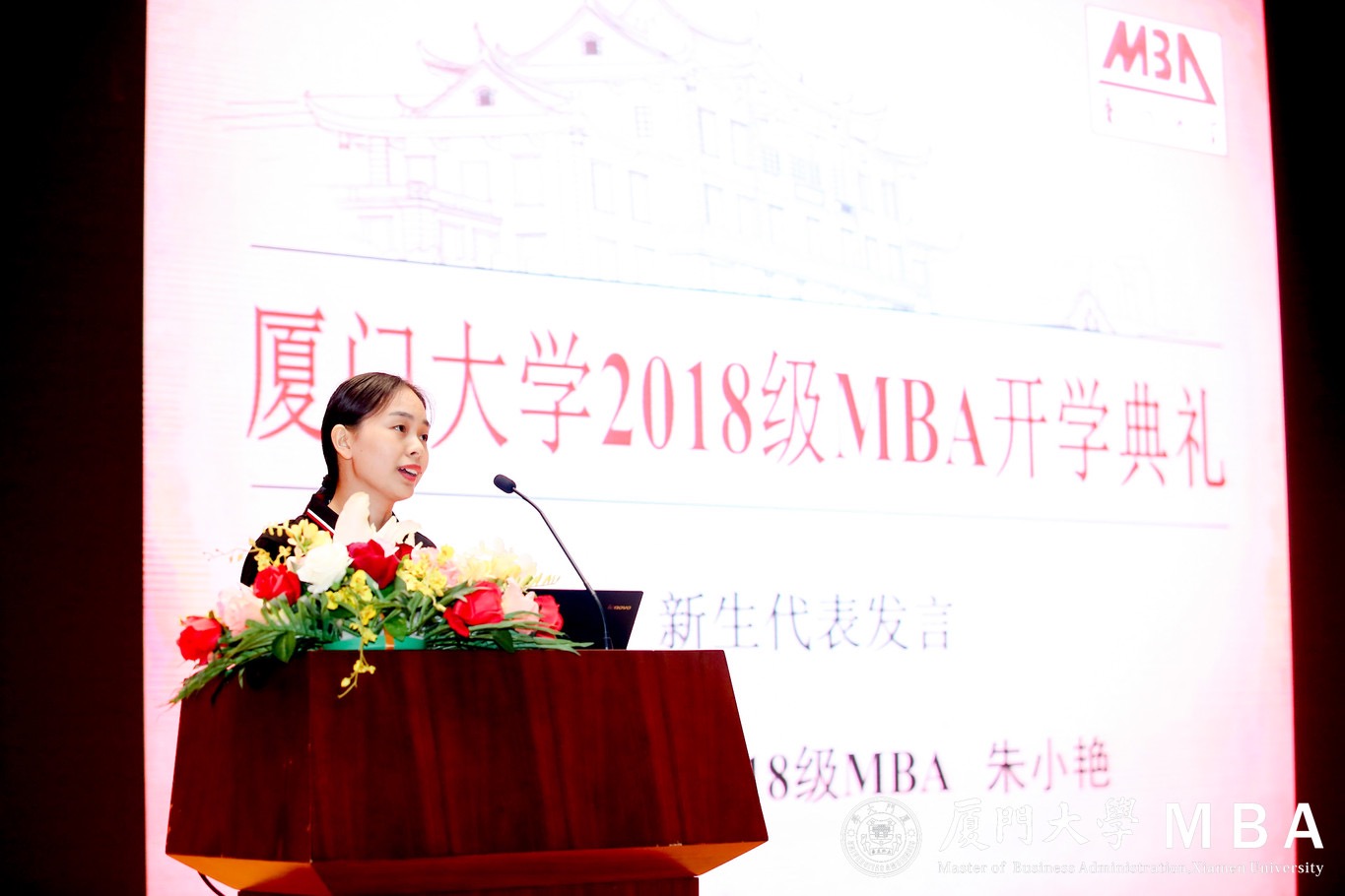 在MBA联合会同学领唱下,伴随着悠扬的厦门大学校歌,简短而隆重的开学仪式告一段落。