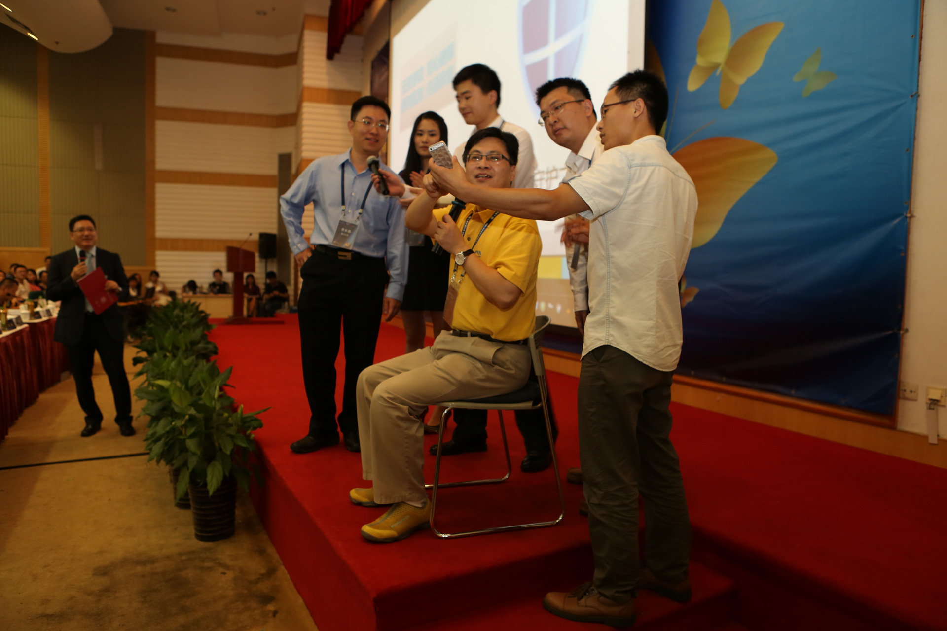 在大赛过程中,也出现了一些小插曲,余长泉同学的哥哥——新加坡国立大学博士生导师余长源作为项目团队的成员从维也纳赶回上海,亲临现场助阵,军心为之大震;王明新同学的母亲空降会场,给儿子带来惊喜的同时,也感动了现场所有的来宾与观众。