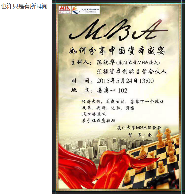 没错,这些活动的背后,都有厦门大学MBA联合会的身影。行了,桂花,上酸菜~~~~