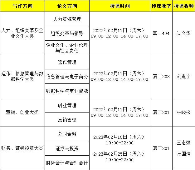 1. 论文专业方向辅导课程安排信息: